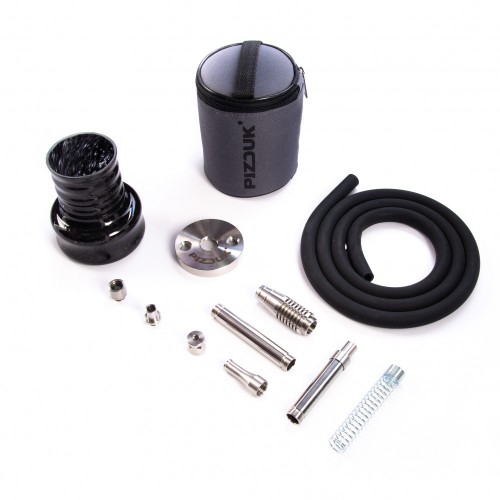 Кальян Pizduk Hookah новинка в сегменте мини кальянов. Кальяны Pizduk производятся в России. Колба выполнена из закалённого стекла, шахта сделана из нержавеющей стали и имеет высоту около 12 см. В комплекте также идёт мундштук из нержавеющей стали и шланг. Кальян Pizduk поставляется в удобной компактной сумке в которую помещается кальян в разобранном виде и его удобно взять куда угодно.