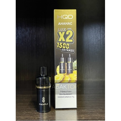 Картриджи HQD LUX Ананас. В упаковке 2 картриджа на 1500 затяжек каждый.